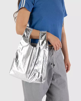 Custom Logo Eco-Friendly Folding Tote Bags Recyclable RPET Polyester Metallic Fabric Heat Transfer Daily Screen-Printed Shopping